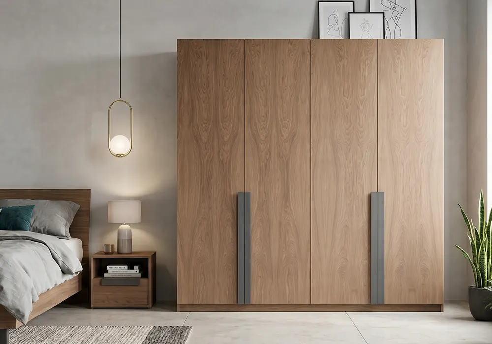 Αναβαθμίστε το υπνοδωμάτιό σας με την εντυπωσιακή ντουλάπα, ένα πάντρεμα ξύλου και όψη βιομηχανικού τσιμέντου.