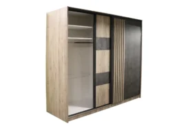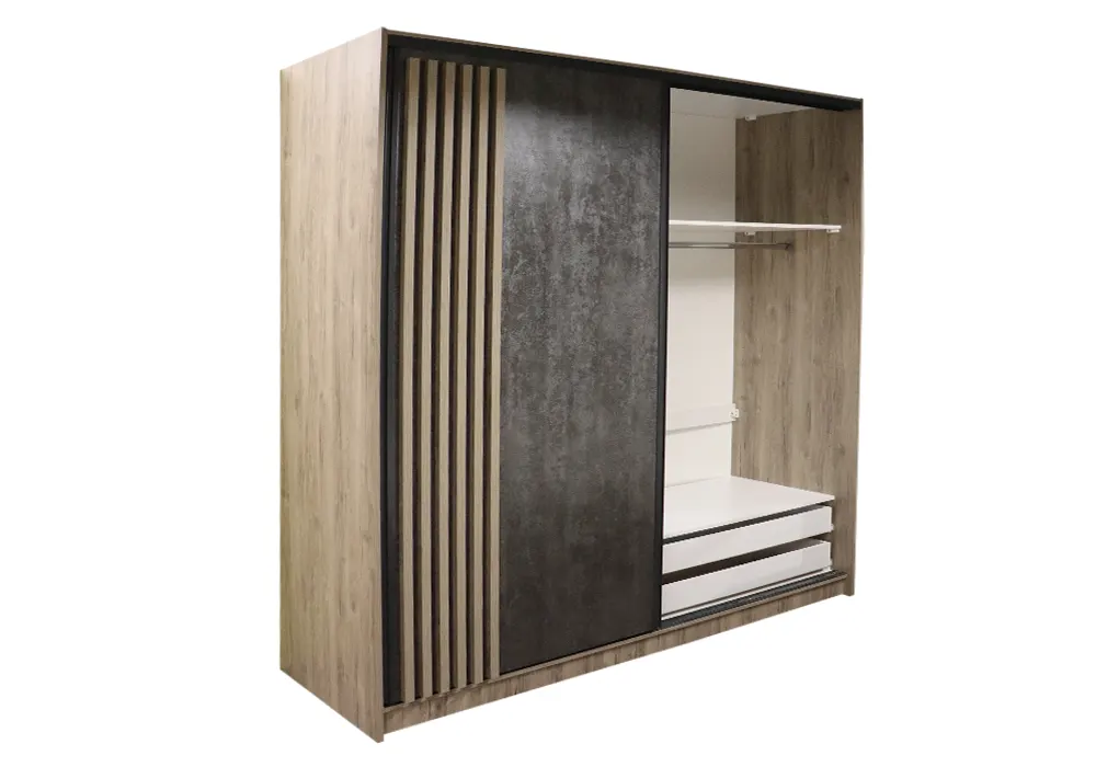 Δίφυλλη συρόμενη ντουλάπα με ξύλο και όψη βιομηχανικού τσιμέντου