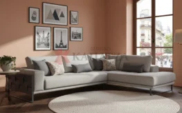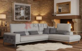 Έχει σχήμα σε γωνία, το οποίο είναι ιδανικό για να φιλοξενεί περισσότερα άτομα και να δημιουργεί μια ζεστή γωνιά στο χώρο.