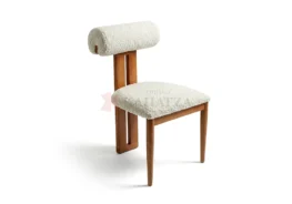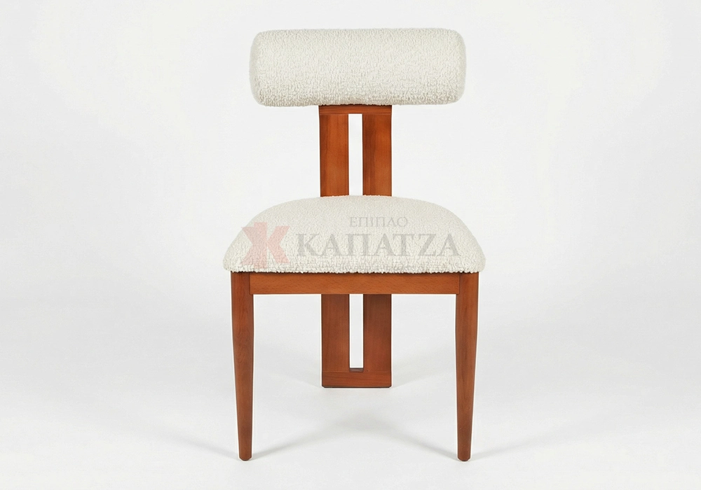 Μοντέρνα Καρέκλα από Μασίφ Ξύλο με Ύφασμα Bouclé και Ξύλινο Σκελετό.