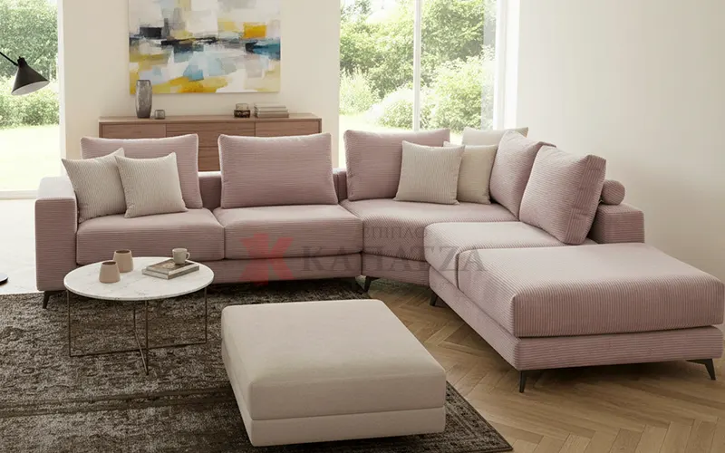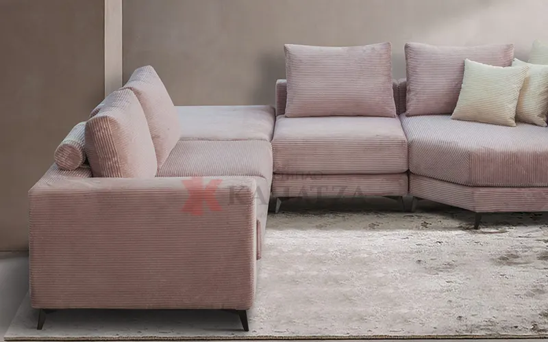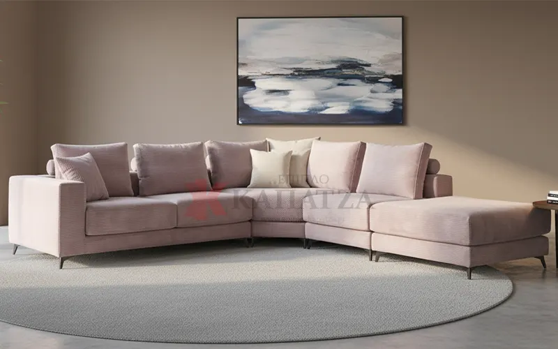 Η διάταξή του σε γωνία προσφέρει άνεση, καθιστώντας τον ιδανικό τόσο για στιγμές χαλάρωσης όσο και για φιλοξενία.