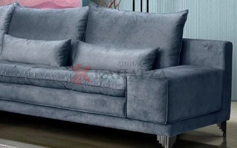 Τα μεταλλικά πόδια, διακριτικά τοποθετημένα, προσθέτουν μια σύγχρονη πινελιά και αναδεικνύουν το design του καναπέ.
