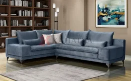 Εντυπωσιακός γωνιακός καναπές προσφέρει πλούσιο και άνετο κάθισμα, ιδανικό για χαλάρωση και κοινωνικές συναθροίσεις.