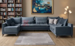 Η μεγάλη του διάσταση και η γωνιακή του διαμόρφωση τον καθιστούν ιδανικό για ένα ευρύχωρο σαλόνι, προσφέροντας άφθονο χώρο για πολλά άτομα.