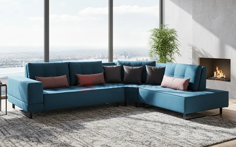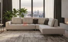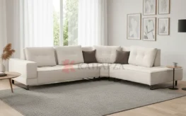 Η διάταξή του σε γωνία προσφέρει άνεση, καθιστώντας τον ιδανικό τόσο για στιγμές χαλάρωσης όσο και για φιλοξενία.