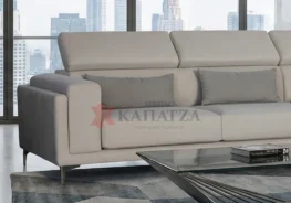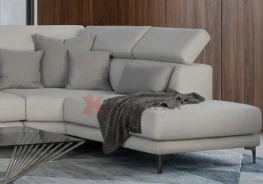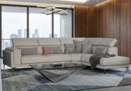 Καναπές σε σχήμα γωνία σε μοντέρνο και κομψό σχεδιασμό, με καθαρές γραμμές και μίνιμαλ αισθητική.