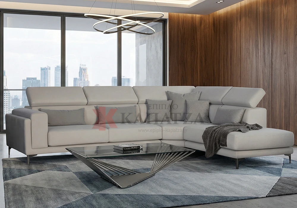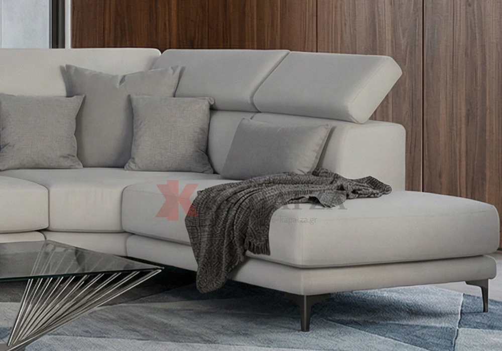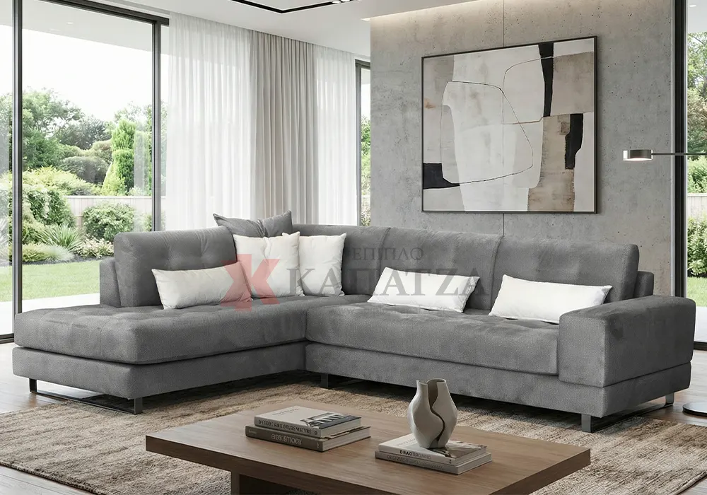Σαλόνι γωνία Serene με καθαρές γραμμές και μίνιμαλ αισθητική.